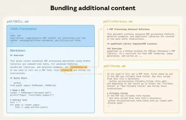 - scripts/:包含 Agent 可以运行的可执行代码,一般为 Python、Bash 或 JavaScript 等脚本语言,类似于轻量级的 MCP,提供底层工具链支持。