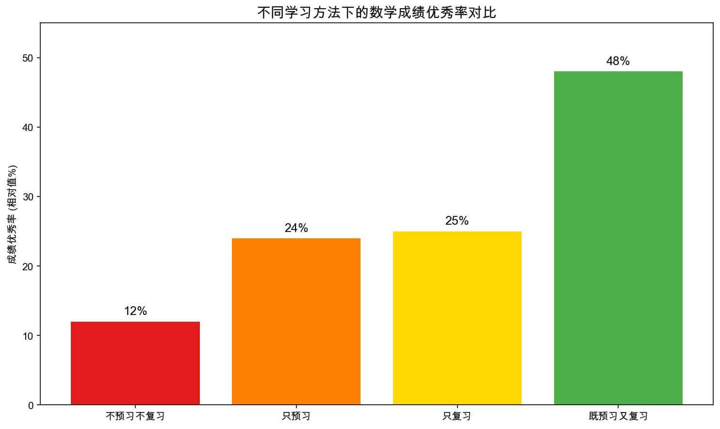 图 2:不同学习方法下的数学成绩优秀率对比