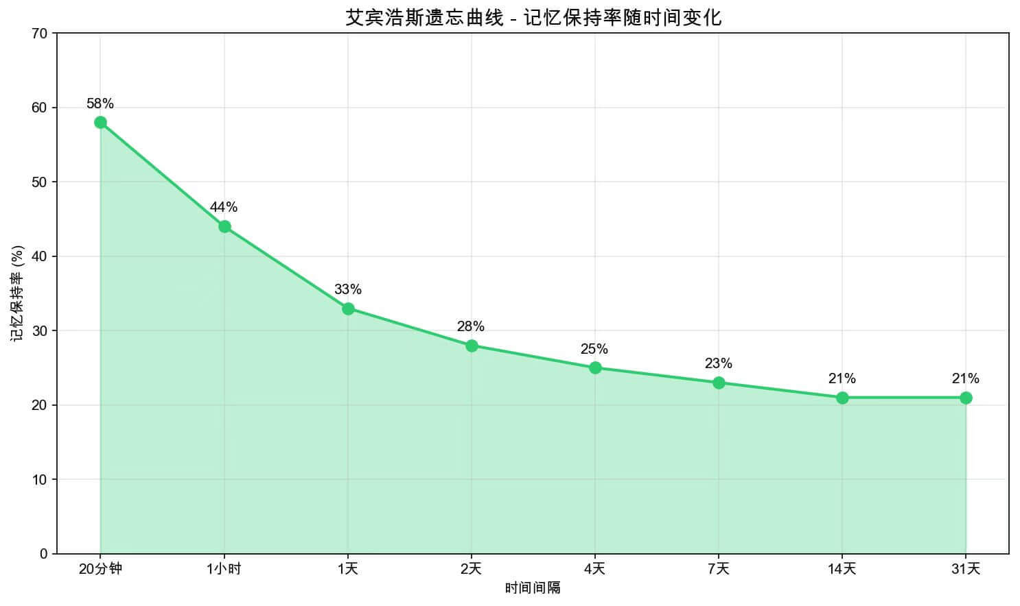 图 4:人的记忆保持随时间变化趋势曲线