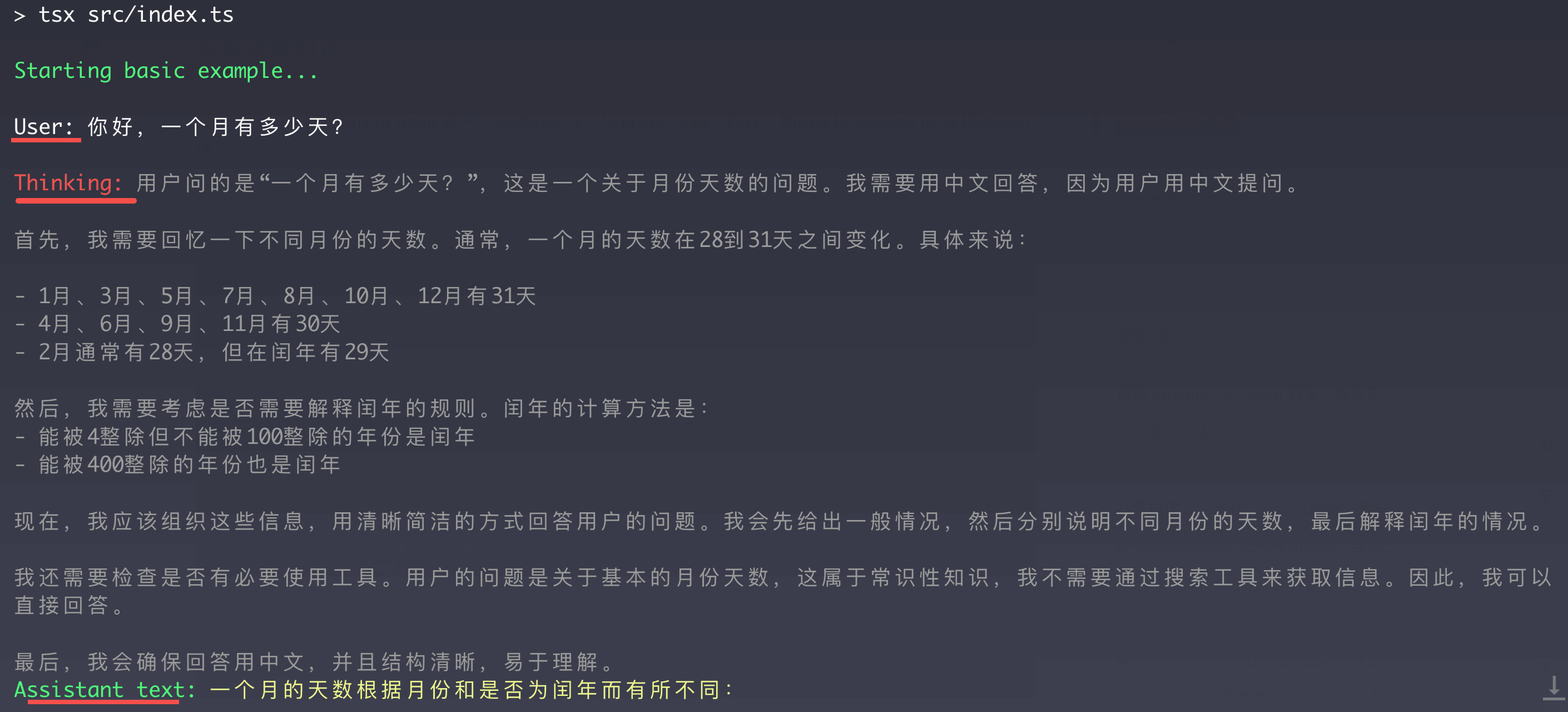 为了提供更好的开发体验,我们可以利用 readline 结合 SDK 的流式输出(Stream Event),构建一个简易的命令行聊天工具。